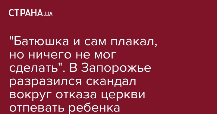 В Запорожье разгорелся скандал из-за отказа священника Украинской православной церкви отпевать двухлетнего ребенка, которого в новогоднюю ночь насмерть задавил самоубийца, выбросившийся из окна.