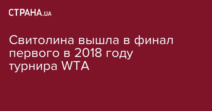 Свитолина вышла в финал первого в 2018 году турнира WTA