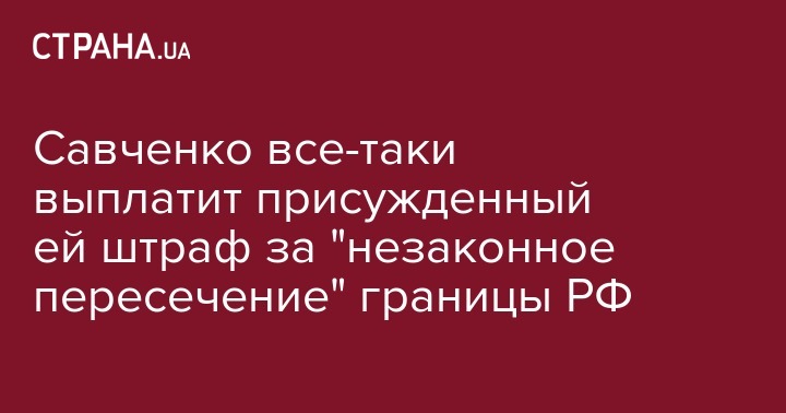 Савченко все-таки выплатит присужденный ей штраф за "незаконное пересечение" границы РФ