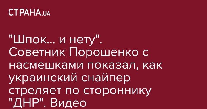 "Шпок... и нету". Советник Порошенко с насмешками показал, как украинский снайпер стреляет по стороннику "ДНР". Видео