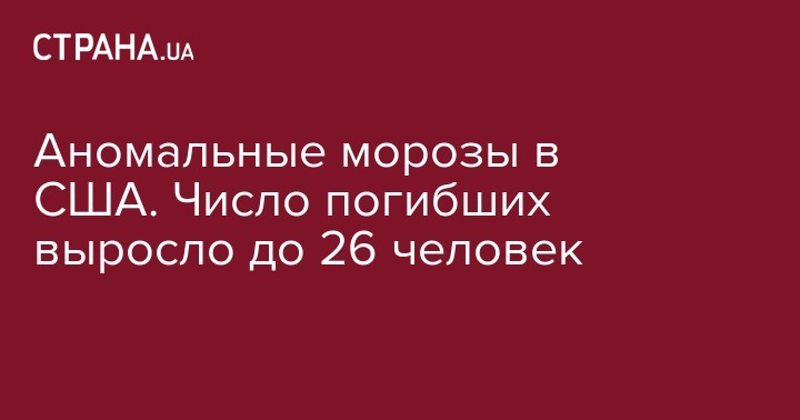 Непривычно сильные для востока США холода привели к гибели 26 людей. Об этом сообщает CBS.