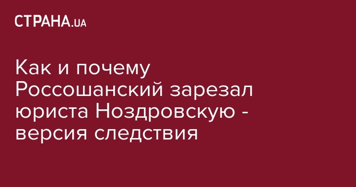 "Досудебным расследованием установлено, что 29.12.2017 около 17 часов 30 минут Ноздровская И.С. на маршрутном такси №355 сообщением город Киев – село Демидов приехала с остановки общественного транспорта, расположенной неподалеку от станции метро Героев Днепра в г. Киеве до села Демидов Вышгородского района, где вышла на остановке общественного транспорта, которая расположена по ул. Солнечная села Демидов Вышгородского района Киевской области. После чего, находясь на указанной остановке общественного транспорта, Ноздровская И.С. встретила Россошанского Ю.В., с которым в течение продолжительного времени пребывала в неприязненных отношениях на основании гибели ее сестры, которая наступила вследствие ДТП с участием сына указанного мужчины. Начала выкрикивать в его адрес слова унизительного содержания, в том числе назвала его убийцей. В этот момент у Россошанского на почве долговременных неприязненных отношений возник внезапный умысел намеренного противоправного причинения смерти Ноздровской И.С. Реализуя свой преступный умысел, направленный на умышленное противоправное причинение смерти Ноздровской И.С, Россошанский, пребывая в состоянии алкогольного опьянения, пользуясь отсутствием посторонних лиц, действуя умышленно, осознавая общественно опасный характер своих действий, направленных на причинение смерти и желая ее наступления, используя нож, который находился у него, нанес множественные колото-резаные телесные повреждения в области жизненно важных органов Ноздровской, а именно шеи и лица, от которых она умерла", - гласят выводы досудебного расследования. .