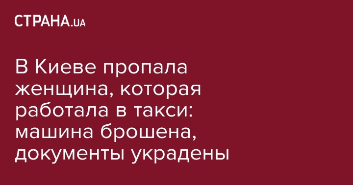 В Киеве пропала женщина, которая работала в такси: машина брошена, документы украдены