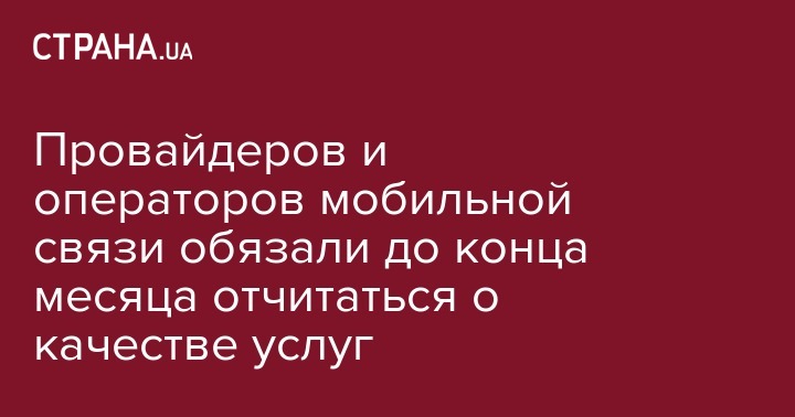 Украинских интернет-провайдеров и операторов мобильной связи обязали отчитаться о качестве предоставляемых услуг. Такое решение приняла Национальная комиссия, осуществляющая госрегулирование в сфере связи и информатизации, пишет UBR.