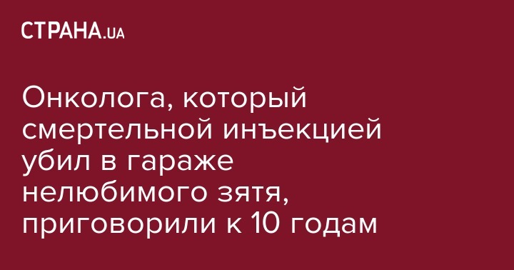 Коминтерновский районный суд Харькова 10 января приговорил к 10 годам лишения свободы 60-летнего врача-онколога за убийство своего зятя смертельной инъекцией.