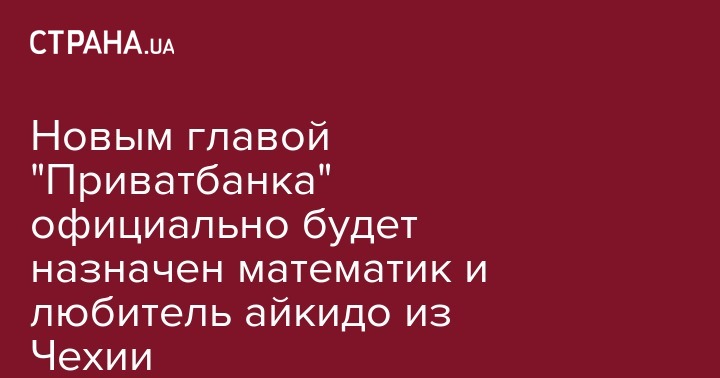 Новым главой "Приватбанка" официально будет назначен математик и любитель айкидо из Чехии
