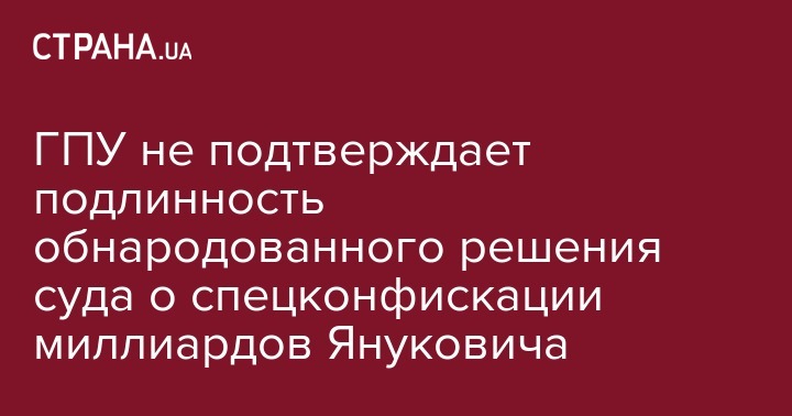Генпрокуратура не может подтвердить или опровергнуть подлинность приговора Краматорского суда о спецконфискации 1,5 млрд долл. экс-президента Виктора Януковича, которое было обнародовано арабским изданием Al Jazeera.