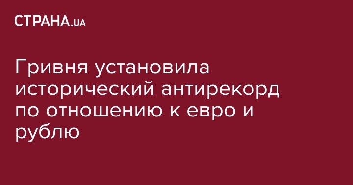 Курс гривни в Украине сегодня побил антирекорд. Украинская валюта по отношению к евро опустилась ниже исторического минимума.