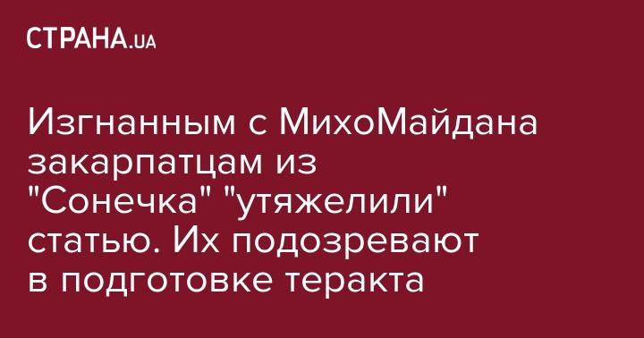 Дело в том, что в процессе расследования закарпатцам переквалифицировали ранее объявленное подозрение. Как указано на сайте прокуратуры Киева, действия активистов "Сонечка" следствие уже не квалифицирует по относительно "легкой" ст.263 УК Украины. Вместо этого им было объявлено о подозрении в подготовке террористического акта - по ч.2 ст. 258 УК Украины.