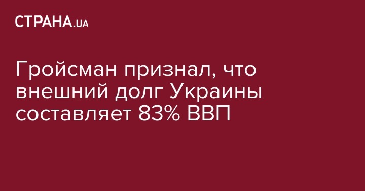Премьер-министр Владимир Гройсман заявил, что сумма внешнего долга Украины достигла 83% ВВП.