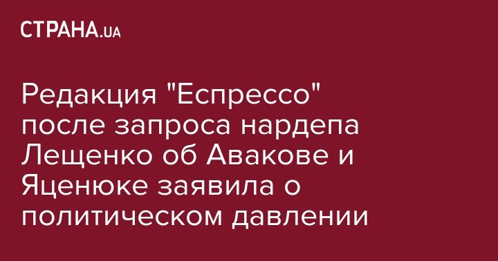Редакция "Еспрессо" после запроса нардепа Лещенко об Авакове и Яценюке заявила о политическом давлении