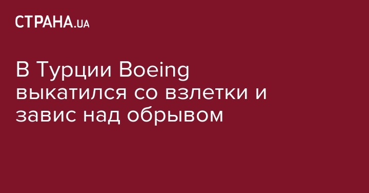 В Турции Boeing выкатился со взлетки и завис над обрывом
