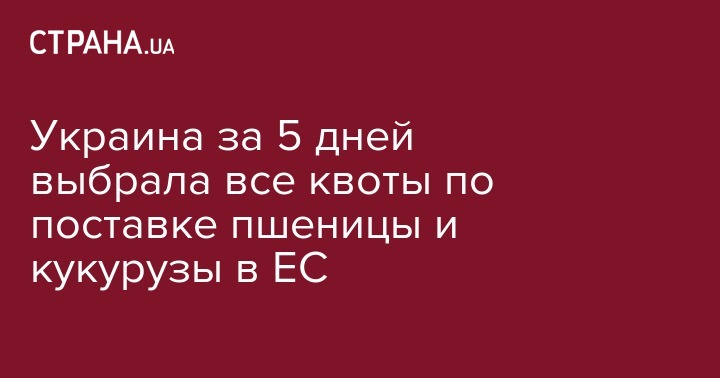 В период с 1 по 5 января Украина полностью выбрала квоты, как основные, так и дополнительные, на экспорт пшеницы и кукурузы в страны Евросоюза в 2018 году.