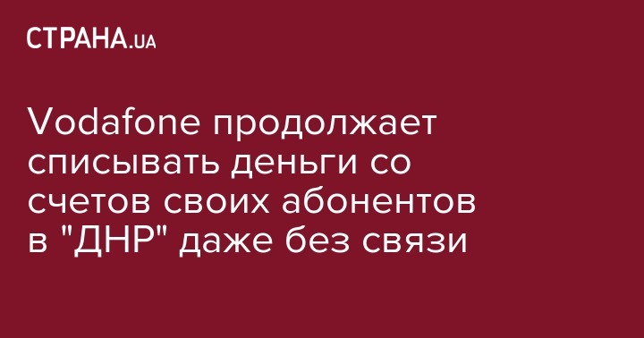 Оператор мобильной связи Vodafone продолжает списывать по 3 грн в день абонплаты со счетов жителей временно неподконтрольной части Украины. При этом, самих услуг мобильной связи компания, по факту, там не оказывает из-за поломки.