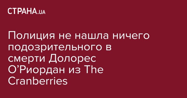 Следствие не считает подозрительными обстоятельства смерти вокалистки рок-группы The Cranberries Долорес О’Риордан. Об этом сообщили в полиции Лондона, передает The Irish Times.