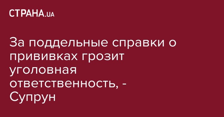 За подделку справки о прививках и вакцинации грозит уголовная ответственность. Об этом сегодня на брифинге заявила и.о. министра здравоохранения Ульяна Супрун, передает РБК-Украина.