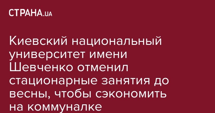 Киевский национальный университет им. Тараса Шевченко отменил занятия до весны из-за отсутствия средств для платы за тепло и электроэнергию.