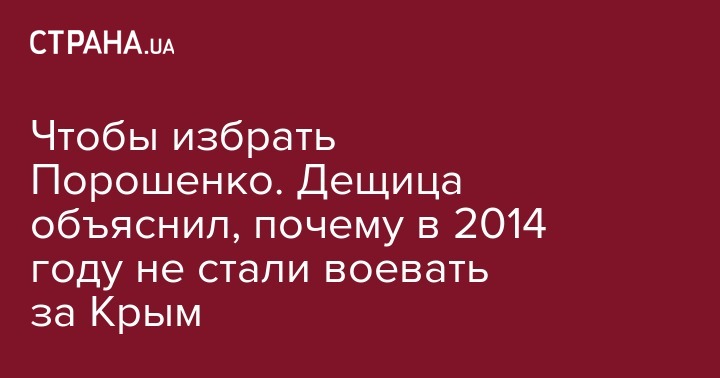 Чтобы избрать Порошенко. Дещица объяснил, почему в 2014 году не стали воевать за Крым
