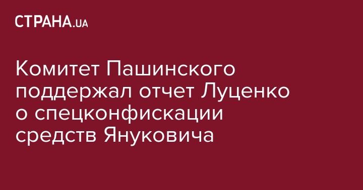 "Поддержать деятельность Генеральной прокуратуры, Генерального прокурора в части розыска выведенных активов украинского государства Януковичем и его организованной преступной группировкой и конфискации", - предложил такое решение Комитета его председатель Сергей Пашинский по итогам доклада генпрокурора Юрия Луценко.