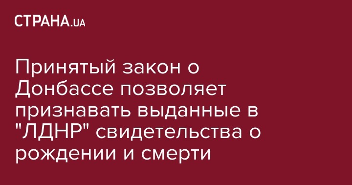 В принятом 18 января законе о Донбассе говорится, что Украина считает недействительными документы, выданные на неподконтрольной территории Донецкой и Луганской области. В тоже время, исключение сделано для до свидетельств о рождении и смерти.