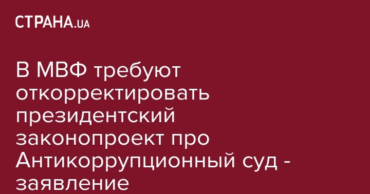 В МВФ требуют откорректировать президентский законопроект про Антикоррупционный суд - заявление