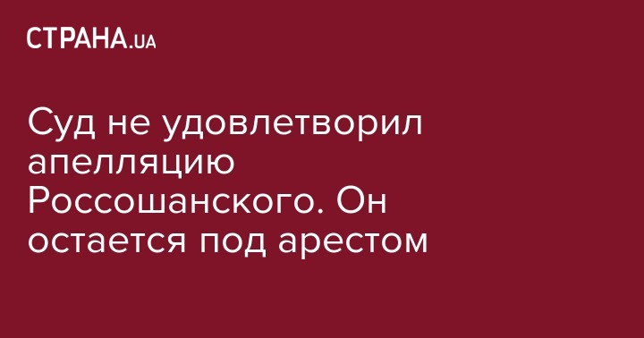 Россошанский останется под арестом, как и постановил суд первой инстанции.