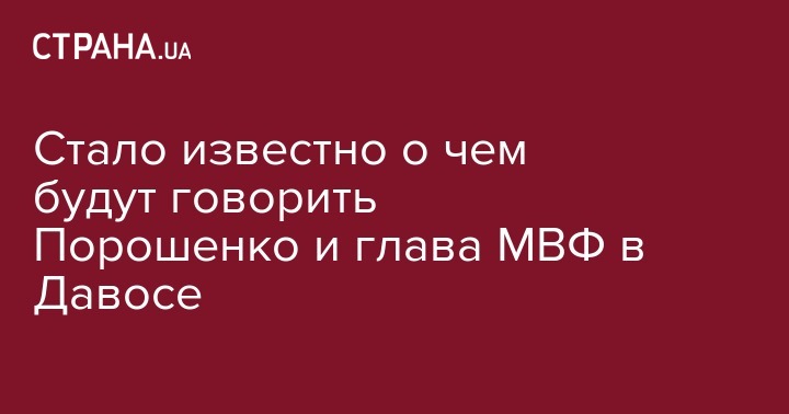 Президент Украины Петр Порошенко и директор-распорядитель Международного валютного фонда (МВФ) Кристин Лагард обсудят в Давосе прогресс страны в выполнении программы Механизма расширенного кредитования (EFF).