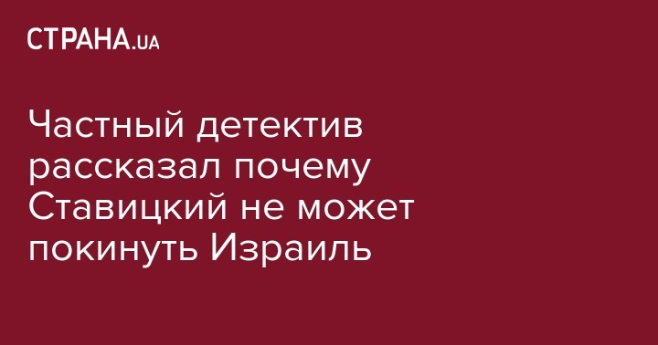 Частный детектив рассказал почему Ставицкий не может покинуть Израиль