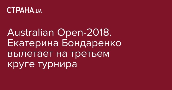 Вслед за Мартой Костюк, которая уступила лучшей теннисистке Украины Элине Свитолине в третьем круге Australian Open, открытый чемпионат Австралии покидает и Екатерина Бондаренко.