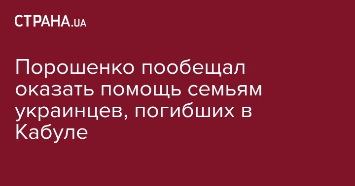 Президент Украины Петр Порошенко поручил правительству оказать необходимую помощь семьям погибших в Кабуле украинцев. Об этом он сообщил на своей странице в Facebook.