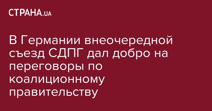 На внеочередном съезде Социал-демократической партии Германии (СДПГ) было решено начать переговоры о создании коалиции с Христианско-демократическим союзом (ХДС) и Христианско-социальным союзом (ХСС).