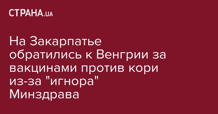Закарпатская область не получает от Минздрава вакцину от угрожающей Украине эпидемией - кори. На протяжении 2016 года Министерство здравоохранения Украины предоставило Закарпатью лишь около трети от ее необходимого количества. С просьбой о гуманитарной помощи в виде вакцин закарпатцы были вынуждены обратиться к Венгрии.