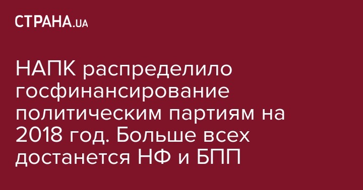 НАПК распределило госфинансирование политическим партиям на 2018 год. Больше всех достанется НФ и БПП