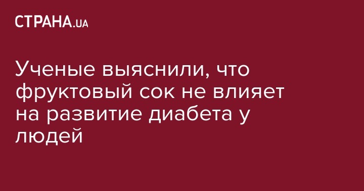 Американские ученые не нашли прямой связи между употреблением 100%-го натурального фруктового сока без добавления сахара и риском развития диабета второго типа.