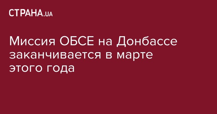 Первый заместитель главы Специальной мониторинговой миссии ОБСЕ в Украине Александр Хуг заявил, что срок действия миссия на территории Украины истекает уже в марте.