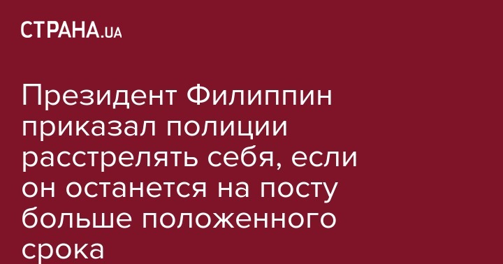 Президент Филиппин приказал полиции расстрелять себя, если он останется на посту больше положенного срока