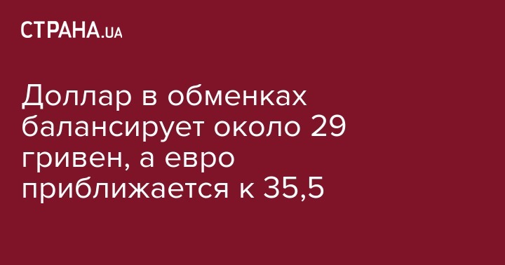 Доллар в обменках балансирует около 29 гривен, а евро приближается к 35,5