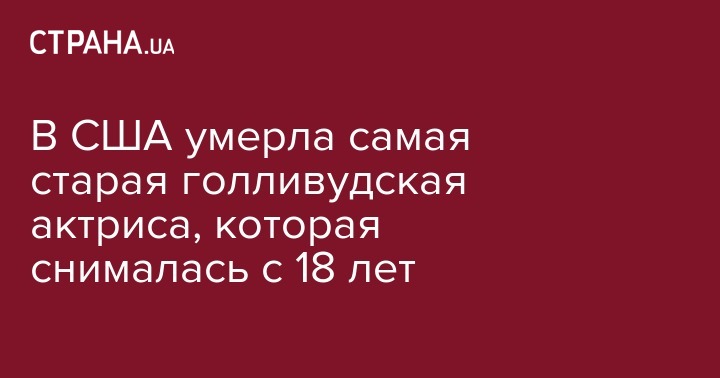В США умерла самая старая голливудская актриса, которая снималась с 18 лет