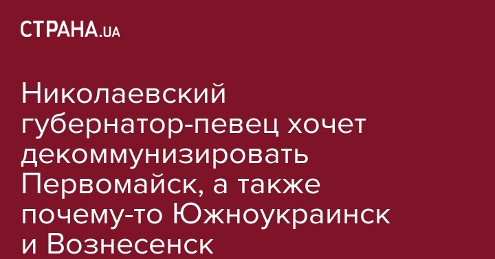 Николаевский губернатор-певец хочет декоммунизировать Первомайск, а также почему-то Южноукраинск и Вознесенск