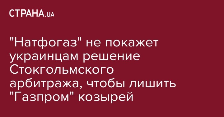 "Нафтогаз" отказался предоставлять журналистам копию решения Арбитражного суда в Стокгольме от 22 декабря по спору с "Газпромом".