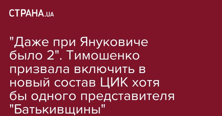 Кроме того, политик обратилась к депутатам всех фракций в ВР: "Если вы не являетесь сообщниками подготовки фальсификации следующих выборов, выступите против того, что президент внес новый состав ЦИК, где доминирует его большинство и нет кандидата от "Батькивщины".