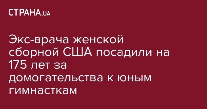 Бывший официальный врач женской сборной США по гимнастике Ларри Нассар получил приговор к 175 годам лишения свободы после того, как почти 160 женщин, в том числе, олимпийские медалистки, заявили о его домогательствах сексуального характера. Заседание состоялось в суде штата Мичиган в среду, 24 января, сообщило информагентство Reuters.