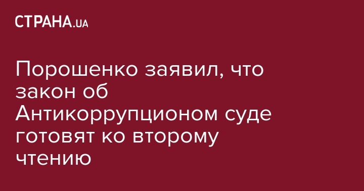 Порошенко заявил, что закон об Антикоррупционом суде готовят ко второму чтению