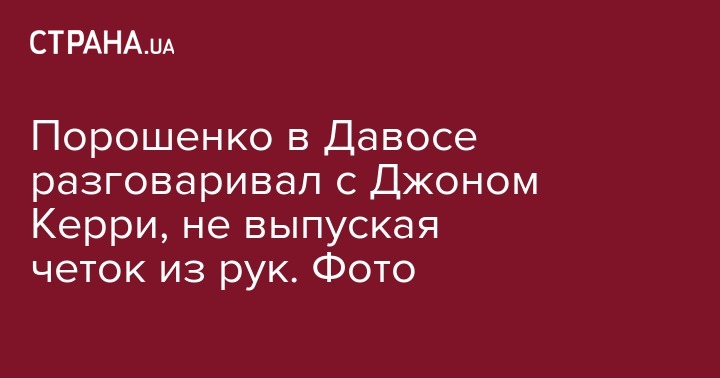 Пользователи соцсетей заметили в руках Петра Порошенко во время разговора с экс-госсекретарем США Джоном Керри в Давосе четки. Фото разместила в Facebook журналист Татьяна Высоцкая.