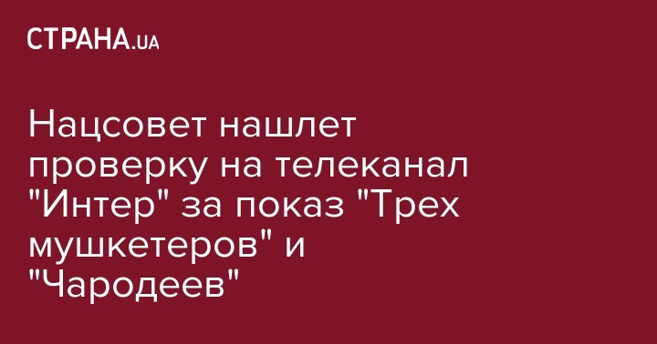 Национальный совет по вопросам телевидения и радиовещания проведет внеплановую проверку телеканала "Интер" из-за трансляции кинолент "Д'Артаньян и три мушкетера" и "Чародеи" с участием артистов из "черного списка".