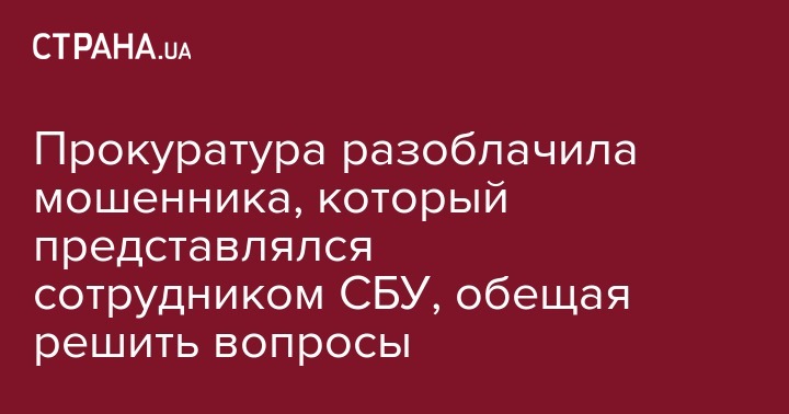 Прокуратура разоблачила мошенника, который представлялся сотрудником СБУ, обещая решить вопросы