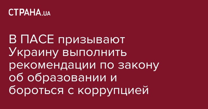 В ПАСЕ призвали выполнить рекомендации Венецианской комиссии по Закону "Об образовании". При этом члены Парламентской Ассамблеи Совета Европы рекомендовали Киеву ускорить процесс борьбы с коррупцией для получения ощутимых результатов.