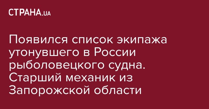 Появился список экипажа утонувшего в России рыболовецкого судна. Старший механик из Запорожской области
