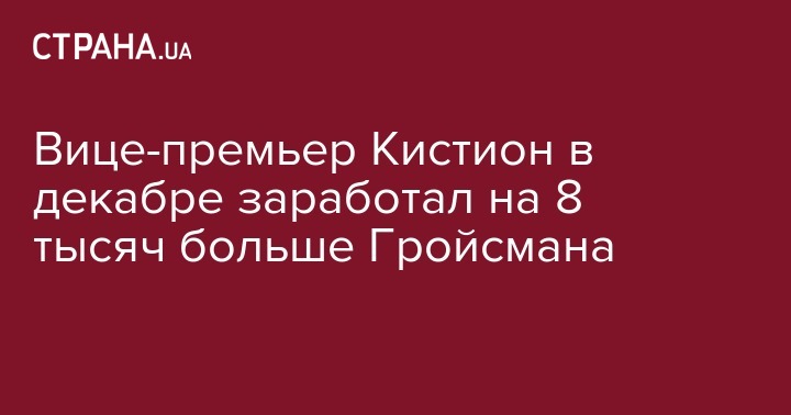 Вице-премьер Кистион в декабре заработал на 8 тысяч больше Гройсмана