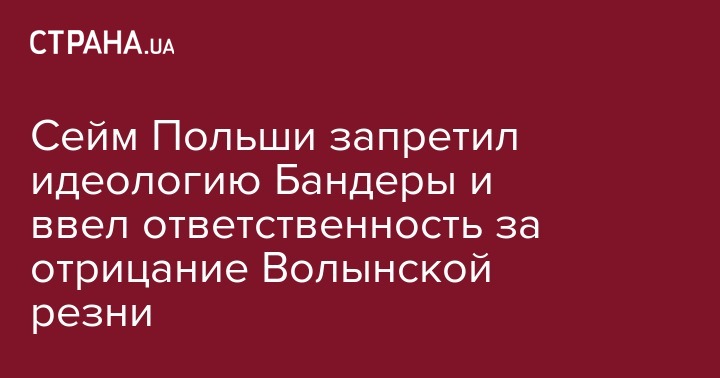 Сегодня, 26 января, в Польше приняли законопроект о запрете пропаганды так называемой "бандеровской идеологии", который был предложен правой политической партией Павла Кукиза – Kukiz'15. Об этом сообщает Do Rzeczy.